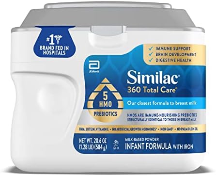 Similac 360 Total Care Infant Formula, Has 5 HMO Prebiotics, Our Closest Prebiotic Blend to Breast Milk, Non-GMO, Baby Formula Powder, 20.6-oz Tub