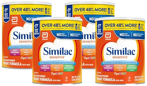 Similac Sensitive Infant Formula, for Fussiness & Gas Due to Lactose Sensitivity, Baby Formula Powder, 29.8-oz Can (Pack of 4)
