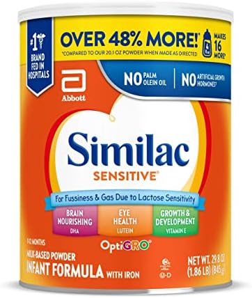 Similac Sensitive Infant Formula, for Fussiness & Gas Due to Lactose Sensitivity, Baby Formula Powder, 29.8-oz Can