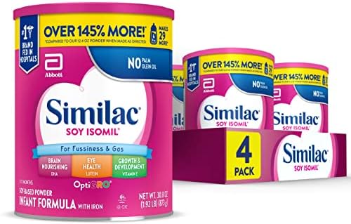 Similac Soy Isomil Infant Formula, for Fussiness & Gas, Plant-Based Protein, Baby Formula Powder, 30.8-oz Value Can, Pack of 4