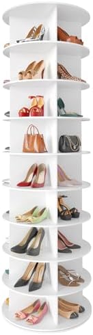 View full detailsSpaceAid 9 Tier Rotating Shoe Rack Tower, Spinning Shoe Display Lazy Susan, Revolving 360 Shoe Rack Storage Round Carousel, Vertical Handbag Rotate Shoes Closet Organization (9-Tier White)