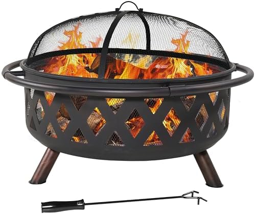 View full detailsSunnydaze Crossweave Outdoor Fire Pit - Wood-Burning Fire Pit for Outside with Spark Screen, Poker and Round Cover - 36-Inch - Bronze