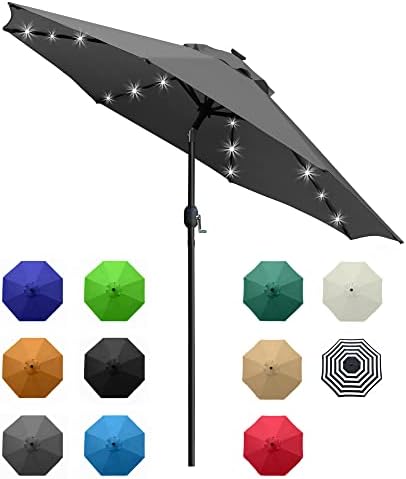 View full detailsSunnyglade 9' Solar LED Lighted Umbrella with 8 Ribs Adjustment and Crank Lift System for Patio (Grey)