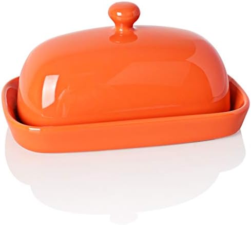 View full detailsSweejar Ceramic Butter Dish with Lid for Countertop,Porcelain Butter Keeper with Knob Handle,Butter Container for East/West Coast Butter, 7 inches (Orange)