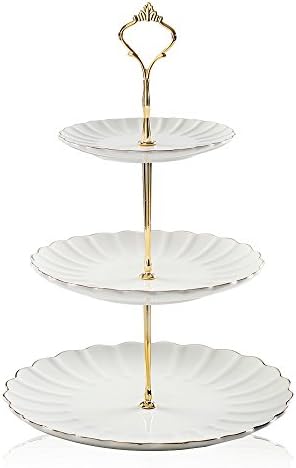 View full detailsSweejar 3 Tier Ceramic Cake Stand Wedding, Dessert Cupcake Stand for Tea Party Serving Platter (White)