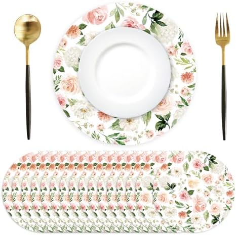 View full detailsPaper Placemats Disposable 50 Pack Pink Floral Placemats 13.4 Inch Rose Floral Place Mats Round Spring Summer Table Mats for Birthday Wedding Tea Party Supplies