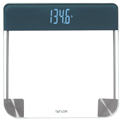 View full detailsTaylor Digital Scales for Body Weight, Highly Accurate 400 LB Capacity, Unique Blue LCD, Stainless Steel Accents Glass Platform, 12.2 x 12.2 Inches, Clear