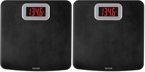 View full detailsTaylor Digital Scales for Body Weight, High 400 LB Capacity, Carbon Fiber Anti-Slip Mat, Readout with Red Digits, Auto On and Off Scale, 11.8 x 11.8 Inches, Black (Pack of 2)