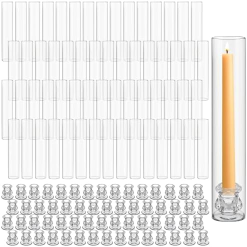 View full details60 Set Glass Hurricane Candle Holders 12.6" Open Ended Glass Candleholder Tube Shape Bottomless and 2.2" Taper Clear Candlestick Holders for Wedding Christmas Party Table Centerpiece (Clear)
