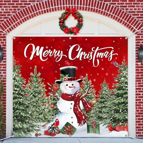 View full detailsChristmas Garage Door Decorations 7 x 8 ft Christmas Snowman Garage Door Banner Merry Xmas Backdrop Cover for Indoor Outdoor Wall Decor