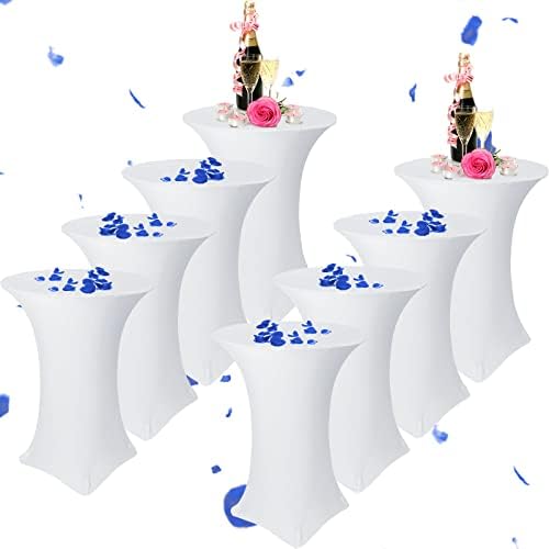 View full detailsTegeme 8 Packs 32 x 43 Inch Cocktail Spandex Table Covers Highboy Top Round Cocktail Tablecloth Stretch Square Fitted Tablecloth for Table Wedding Pub Bar Banquet Party (White)