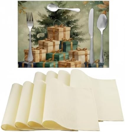 View full detailsTegeme 8 Pieces Sublimation Blank Placemats Mats White Burlap Washable Placemats for Christmas Dining Tables Birthday Party Wedding DIY Table Mats Home Kitchen Holiday Table Decor 12 x 16 Inch