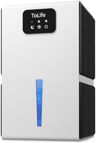 View full detailsToLife Dehumidifiers for Home 95 OZ Water Tank with Auto-Off 1000 sq.ft Sleep Mode Portable Dehumidifier for Basement Bathroom Home RV Closet Room 7 Colors LED Light, White
