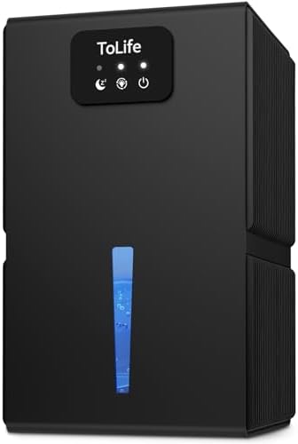View full detailsToLife Dehumidifiers for Home 95 OZ Water Tank with Auto-Off 1000 sq.ft Sleep Mode Portable Dehumidifier for Basement Bathroom Home RV Closet Room 7 Colors LED Light,Black