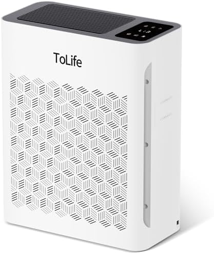View full detailsToLife Air Purifiers for Home Large Room Up to 1295 Ft² with PM 2.5 Display Air Quality Sensor, Auto Mode, Timer, HEPA Air Purifier for Bedroom Filters Smoke, Pollen, Pet Dander, Allergies, Grey