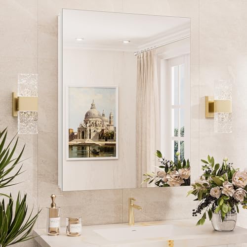 View full detailsTokeShimi 20x26 Medicine Cabinet Mirror with Storage Tempered, Aluminum Surface Mount or Recessed Medicine Cabinet White with Adjustable Shelves for Bathroom Vanity Modern Farmhouse