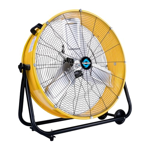 View full detailsTornado - 24 Inch High Velocity Heavy Duty Tilt Metal Drum Fan Yellow Commercial, Industrial Use 3 Speed 8540 CFM 1/3 HP 8 FT Cord UL Safety Listed (YELLOW)