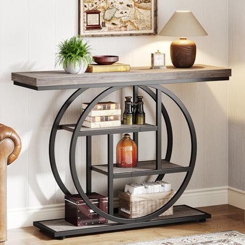 View full detailsTribesigns 41.3" Console Table, Industrial 4-Tier Sofa Table Entryway Table with Circle Base, Narrow Wood Accent Tables with Storage Shelves for Living Room, Hallway, Foyer, Gray
