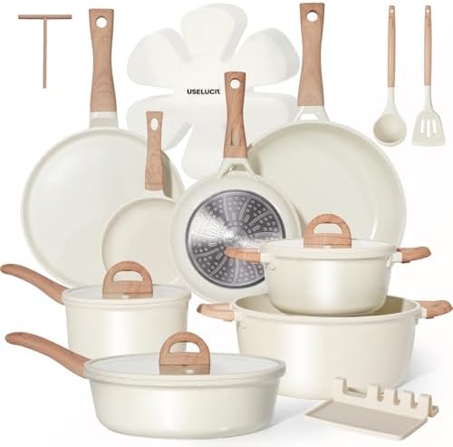 View full detailsPots and Pans Set Non Stick Non-Toxic 22 Pcs Ceramic Cookware Sets Nonstick Kitchen Pot&Pan With Lid Cream White Granite Induction Compatible with Glass Lids Crepe Frying Pan PFOA/PFOS-Free