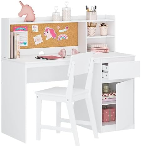 View full detailsUTEX Kids Study Desk with Chair, Kids Desk and Chair Sets with Hutch and Storage Cabinet, Wooden Children Study Table, Student Writing Table Computer Workstation for 5-12 Years Old