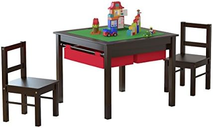 View full detailsUTEX Wooden 2 in 1 Kids Construction Play Table and 2 Chairs Set with Storage Drawers, and Built in Plate Compatible with Lego and Duplo Bricks(Espresso with Red Drawers)
