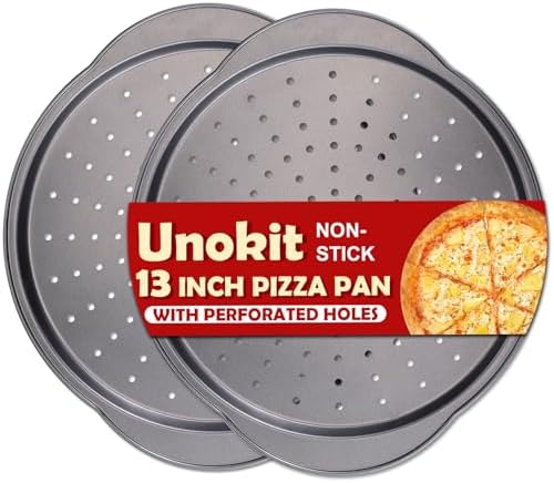 View full detailsUnokit 13" Pizza Pan for Oven 2PCS, Round Carbon Steel Pizza Pan, Non-Stick Pizza Tray with Perforated Holes and Grip Handles, Dishwasher Safe, Grey