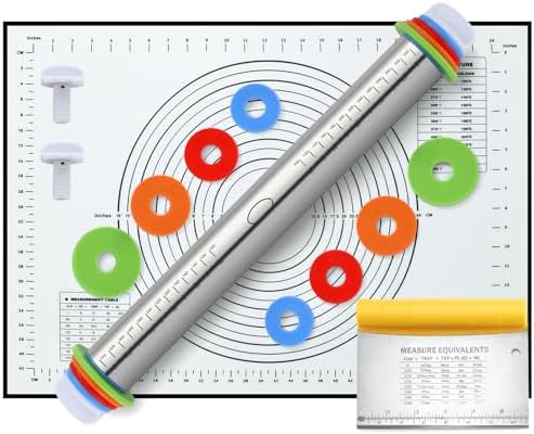 View full detailsUnokit Rolling pin 3-Piece Set, 17.5" Rolling Pin with Adjustable Thickness Rings, Stainless Steel Dough Roller, Rolling Pins for Baking Pizza, Pasta, Bread - Baking Essentials
