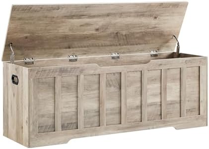 View full details47.2" Storage Chest Extra Large,Storage Trunk with 2 Safety Hinges,Wooden Storage Bench,Shoe Bench,47.2x15.7x19.1 Inch,Easy Assembly,Storage Bench for Bedroom,Living Room,entryway(Greige).