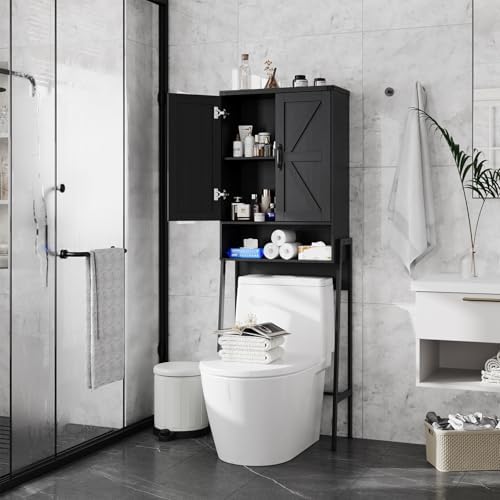 View full detailsOver The Toilet Storage Cabinet with 2-Door Design Bathroom Organizers and Storage with Anti-Tip Device Over Toilet Organizer with Shelves for Bathroom,Restroom,Laundry Black