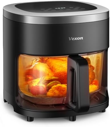 View full detailsVexon 6-IN-1 Glass Air Fryer,4.5QT Air Fryer with Viewing Glass Pot, Air Fry, Roast, Reheat, Dehydrate, Air Crisp Technology,Nonstick & Dishwasher Safe Basket,97% Less Oil,Features Digital Timer