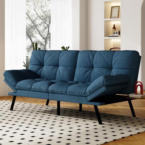 View full detailsVipbear Convertible Futon Sofa Bed, Linen Futon Couch with Adjustable Backrest & Armrests, Folding Small Recliner Sleeper Sofa Bed for Living Room, Apartment, Office, Blue