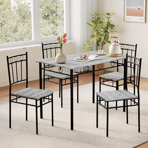 View full detailsVipbear Kitchen Dining Table Set for 4, 5-Piece Kitchen Table Set,Dining Room Table Sets,Rectangular Kitchen Table Set with 4 Chairs for Small Space, Dinette,Apartment,Rustic Grey
