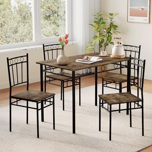 View full detailsVipbear Kitchen Dining Table Set for 4, 5-Piece Kitchen Table Set,Dining Room Table Sets,Rectangular Kitchen Table Set with 4 Chairs for Small Space, Dinette,Apartment, Rustic Brown