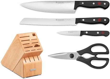 WÜSTHOF GOURMET SERIES: 5 Piece Knife set with triple riveted synthetic polypropylene handles that resist fadind, discoloration, heat and impact...
