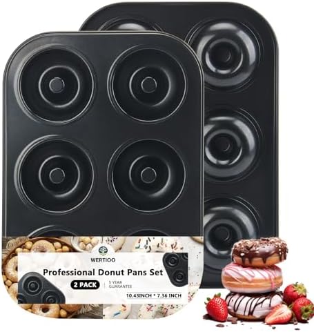 View full detailsWERTIOO Donut Pans 2 Pack, Non-Stick 6-Cavity Mini Baking Pans, High-grade Carbon Steel Donut Mold - Bagels Doughnuts Biscuit Cake Baking Tray Maker Pan, Dishwasher, Oven, Freezer Safe
