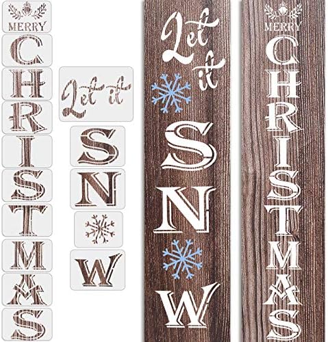 View full detailsWILLBOND 16 Pieces Merry Christmas Let It Snow Stencil for Painting on Wood Reusable Porch Sign Large Vertical Christmas Winter Letter Stencil Holiday Drawing Wood Sign for Tree Porch Wall Xmas Decor