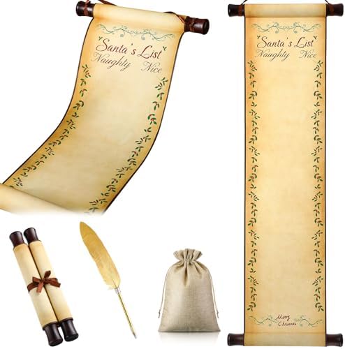 View full detailsWatersay Christmas Santa's List of Naughty and Nice Scroll Paper Blank Scrolls with Wooden Stick 7.8 x 31.5 Inch Paper Santa Claus Role Play Prop for Hand Writing with Burlap Bag and Feather Pen