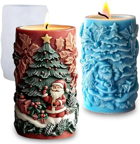 View full detailsWehous Christmas Candle Molds, 3D Embossed Santa Tree Holly Cylinder Silicone Molds for Resin Candle Soap Wax, Christmas Ornament Fondant Chocolate Dessert Mold Art Craft Xmas Decor (Santa & Tree)