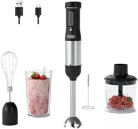 View full detailsCordless Immersion Hand Blender, 5-in-1 Variable Speed blender handheld,Rechargeable with 2000mAh Battery, BPA-Free & Dishwasher-Safe Accessories:700ml Beaker,Chopper,Whisk & Milk Frother,Black