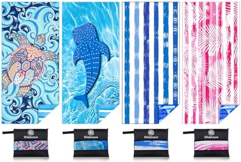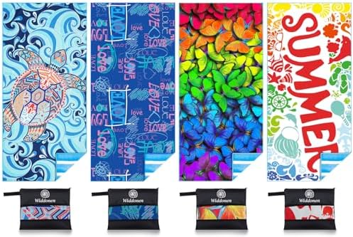 View full details4 Pack Microfiber Lightweight Beach Towel Sand Free Quick Dry Absorbent Thin Compact Towels for Swimming Pool Camping Beach Accessories Large Easy Pack Travel Things for Vacation Essentials Gift