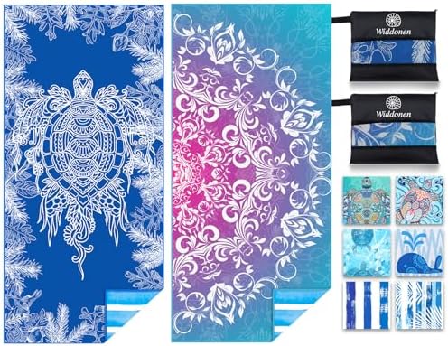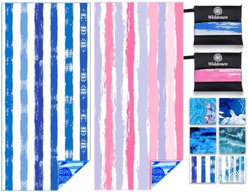 View full details2 Pack Microfiber Thin Lightweight Beach Towel Sand Free Quick Dry Absorbent Compact Towels for Swimming Pool Camping Beach Accessories Large Easy Pack Travel Things for Vacation Essentials Adult Gift