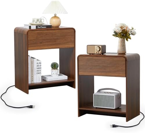 View full detailsFluted Nightstand Set of 2 with Charging Station, Modern Bed Side Table End Table with Drawer Storage, Large Wooden Night Stands Bedside for Bedroom Living Room Sofa Office, Walnut 2 Sets