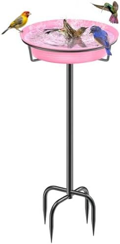 View full details28In Freestanding Birdbaths Bowl Outdoor, Standing Garden Bird Bath Bird Feeder Bowl with Metal Stake, Detachable Decoration Spa Birdfeeder for Garden Patio Yard Lawn, 4 Spiky Feet (Pink)