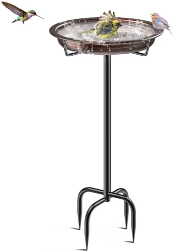 View full details35.5In Freestanding Birdbaths Bowl Outdoor, Standing Garden Bird Bath Bird Feeder Bowl with Metal Stake, Detachable Decoration Spa Birdfeeder for Garden Patio Yard Lawn, 4 Spiky Feet (B)