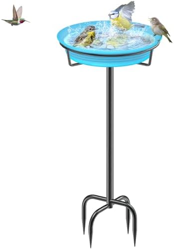 View full details35.5In Freestanding Birdbaths Bowl Outdoor, Free Standing Garden Bird Bath Bird Feeder Bowl with Metal Stake, Detachable Decoration Spa Birdfeeder for Garden Patio Yard Lawn, 4 Spiky Feet (Blue)