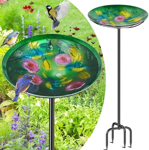 View full details28In Freestanding Birdbaths Bowl Outdoor, Free Standing Garden Bird Bath Bird Feeder Bowl with Metal Stake, Detachable Decoration Spa Birdfeeder for Garden Patio Yard Lawn, New Upgrade(A)