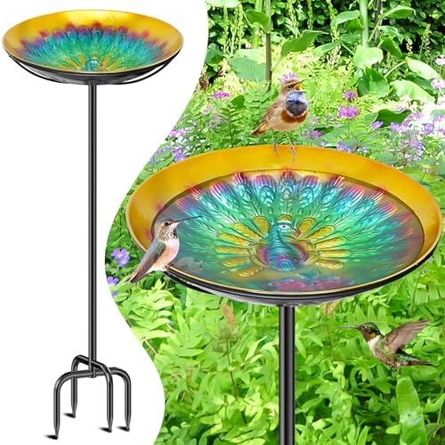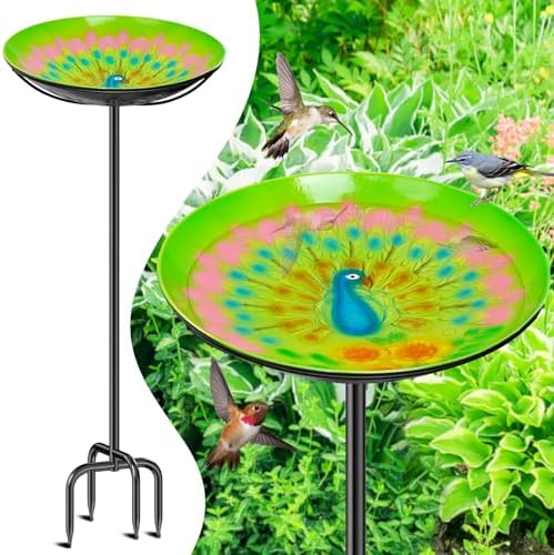 View full detailsMetal Bird Bath for Outside, Freestanding Birdbaths & Birdfeeder with Colorful Peacock Embossed Basin, Vintage Bird Baths Feeder Bowl for Outdoors Garden Yard Lawn Decor (Peacock Green)