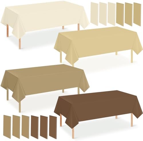 View full details12Pcs Brown Plastic Disposable Tablecloths,4 Gradient Brown Colors Rectangle Table Cover Waterproof Table Cloth for Fall Thanksgiving Birthdays Weddings Parties Decorations,54 x 108 Inch