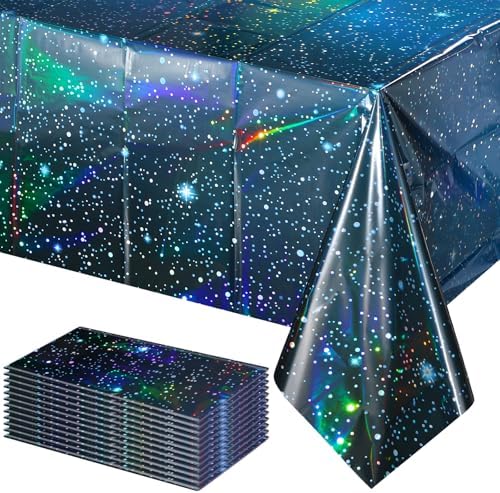 Package Include: you will get 12 pieces of plastic space tablecloths in iridescent blue,The shimmery stars will show different colors effects un...