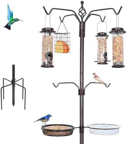 View full detailsBird Feeding Station Kit, 94 Inch Bird Feeder Pole Stand for Outdoors Hanging with 4 Feeders, Metal Suet and Bath Tray for Wild Birds Watching